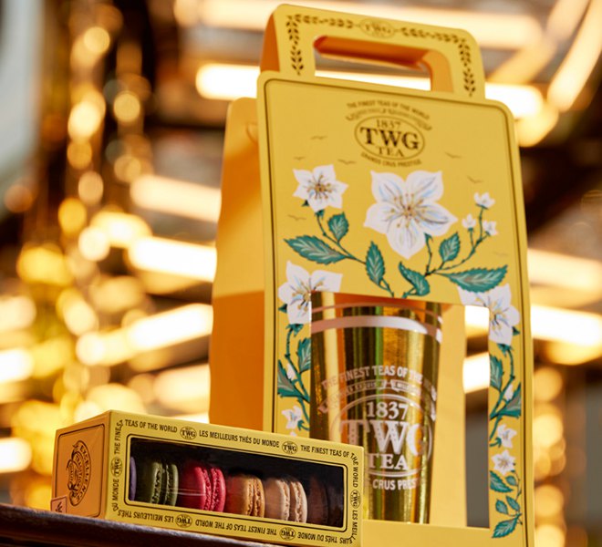 TWG Tea精品店的經典茶罐牆陳列全球逾1000款 TWG Tea獨家調配茶及製作精美的茶組禮盒、時尚茶具飾品以及每天新鮮烘製的茶點供顧客享受選購之樂。透過新的外帶茗茶概念,並從逾100款茗茶可供選擇, 冷熱均可,款式數量為全澳门最多,繼續享受生活中的奢華小確幸。